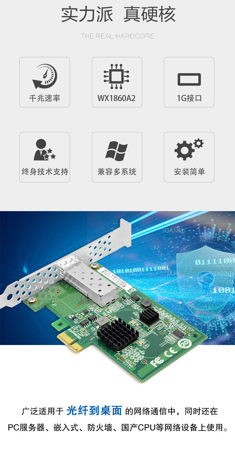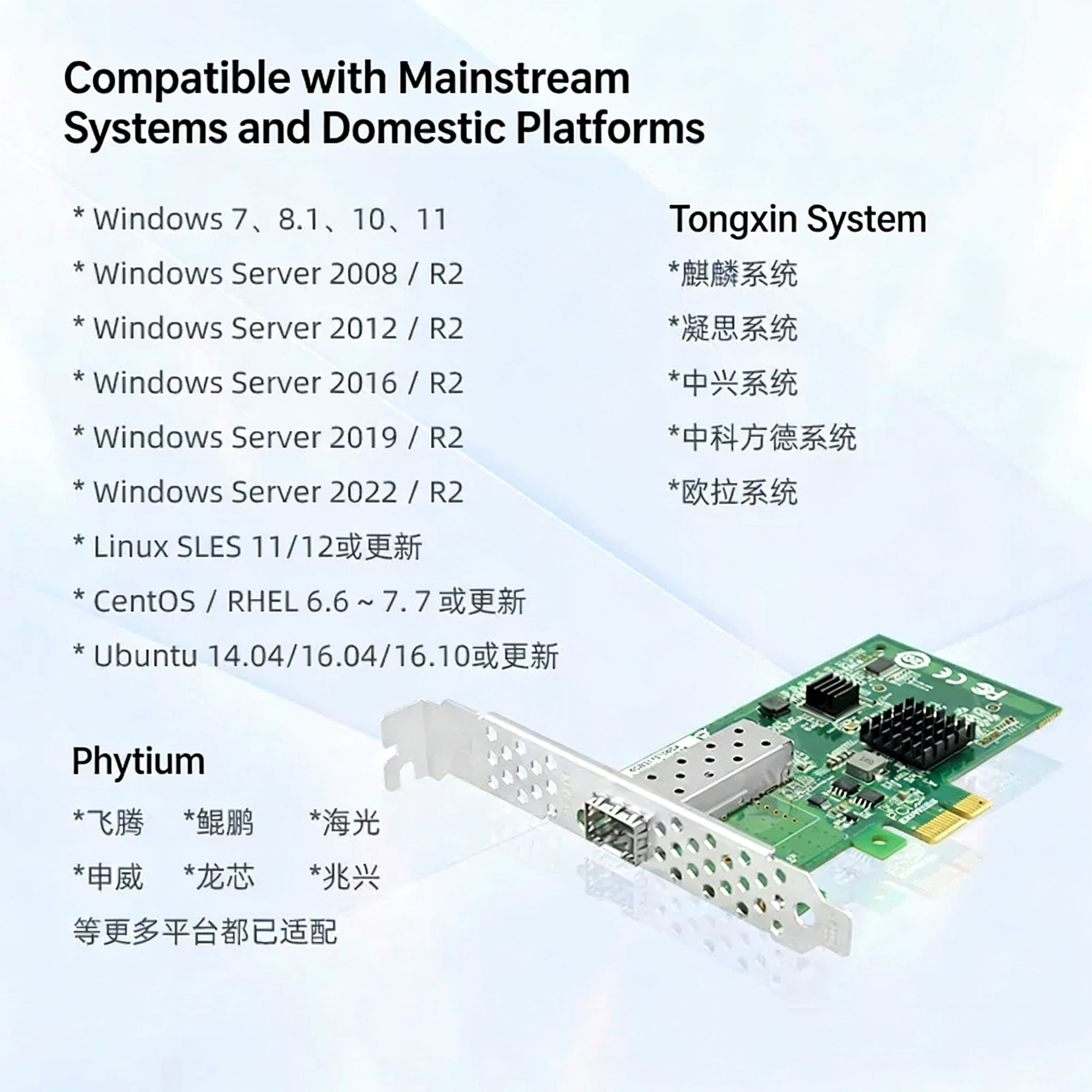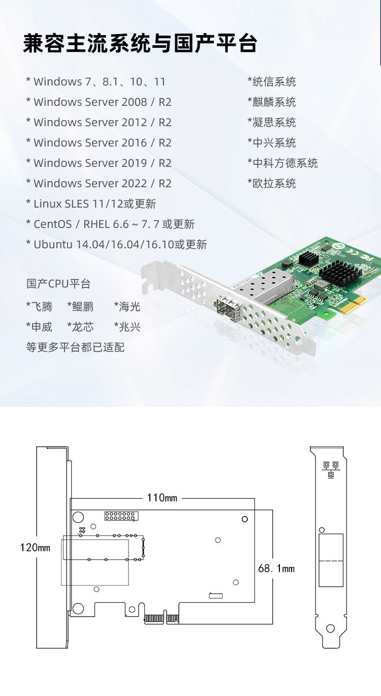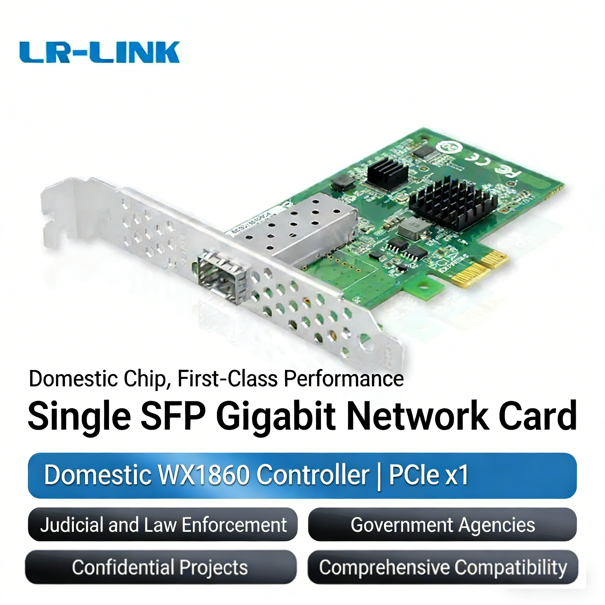 LR-LINK Lianrui Domestic Xinchuang Gigabit PCIe x1 Single Optical Port Gigabit Xinchuang Fiber Network Card Based on Domestic Chip Compatible with Multiple Systems and Platforms LRES2026PF-SFP